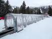 An der Mittelstation der Sweetwater Gondola liegt das moderne Übungsgelände mit überdachtem Förderband, leichtem Übungshang und eigenem Bereich abseits des Trubels. Die Solitude Lodge bietet zudem einen umfassenden Service und ein gehobenes Restaurant.