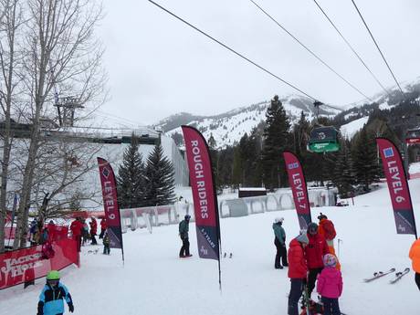 Familien mit Kindern sind im Skigebiet Jackson Hole gut aufgehoben. Die Kids Ranch und das Solitude Station Learning Center sind ideal für die ersten Versuche im Schnee. Im Talbereich gibt es leichte und breite Pisten für die ganze Familie, wie Lower Teewinot, Lower Werner, Antelope Flats, Pooh Bear und Eagle's Rest. Das restliche Skigebiet ist nicht unbedingt für Familien mit kleinen Kindern geeignet.