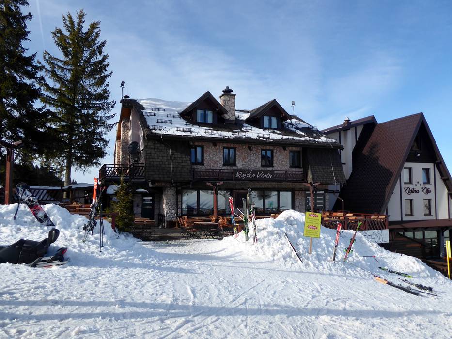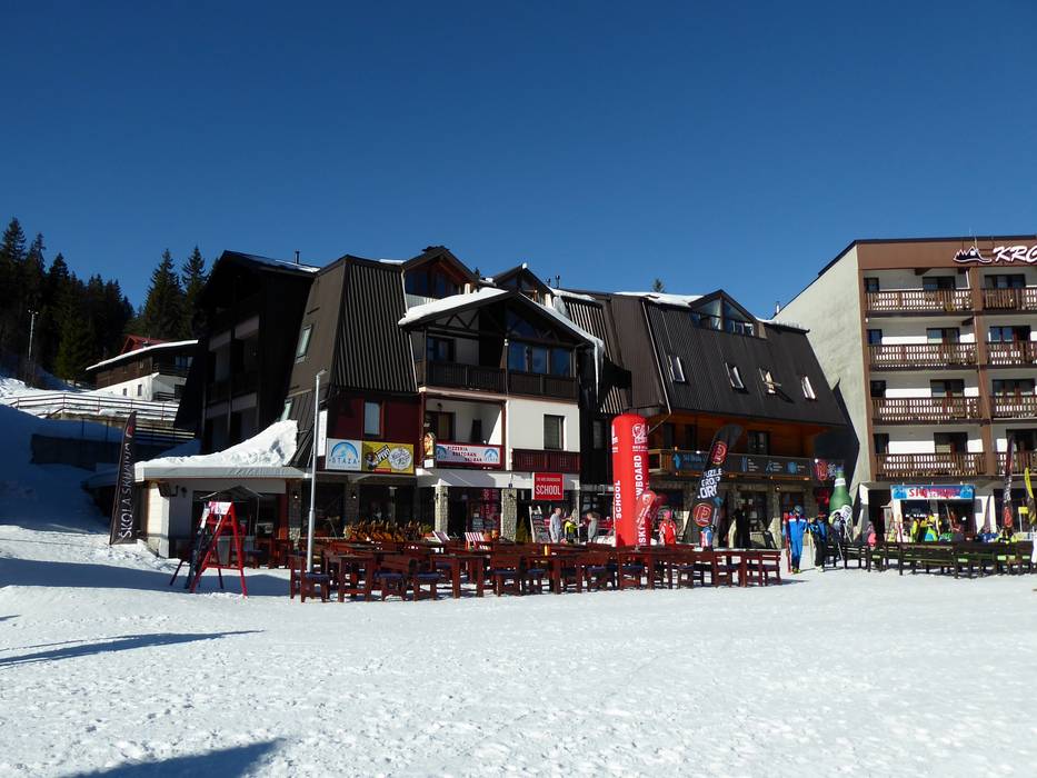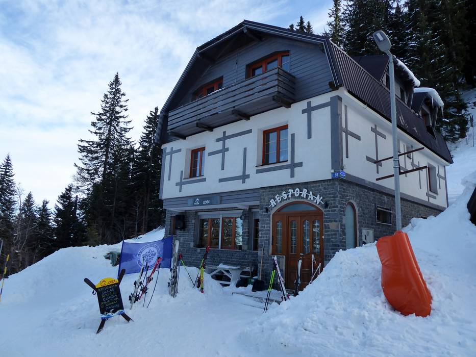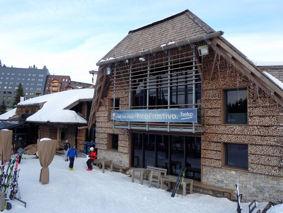 Mitten im Skigebiet lädt die Skihütte Bijeli Javor für einen Einkehrschwung ein. An kalten Tagen wärmt der offene Kamin in der Hütte und bei schönem Wetter lockt die Sonnenterrasse.