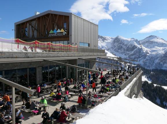 Das Panoramarestaurant Jenneralm verwöhnt mit regionalen Schmankerl im gehobenen Ambiente. Serviert wird ein reichhaltiges Frühstück, ein herzhaftes Mittagessen sowie schmackhafte Brotzeiten und süße Backwaren. Von der sehr großen Sonnenterrasse hat man einen herrlichen Blick auf die Bergwelt. Im Obergeschoss gibt es zudem kleine Speisen und Getränke zum Mitnehmen.