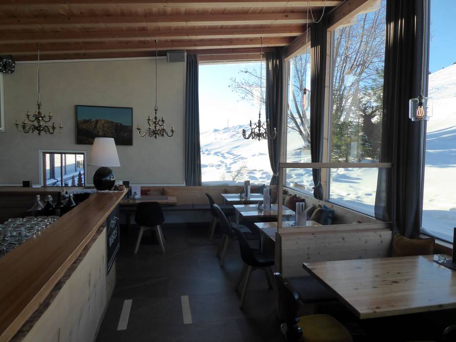 Das SB-Restaurant befindet sich im Hotel Schwarzhorn und bietet typische Skifahrerklassiker. Bei schönem Wetter kann man draußen sitzen und das Treiben auf den Pisten beobachten.