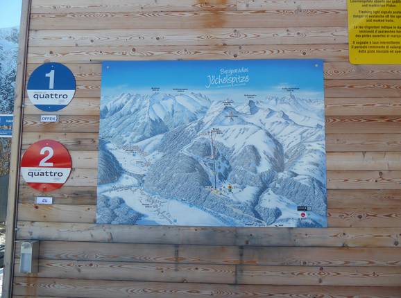 An der Talstation der Jöchelspitzbahn findet man einen großen Pistenplan mit Informationen zu den geöffneten Pisten. Die Pisten selber sind alle sehr gut markiert und ausgeschildert.