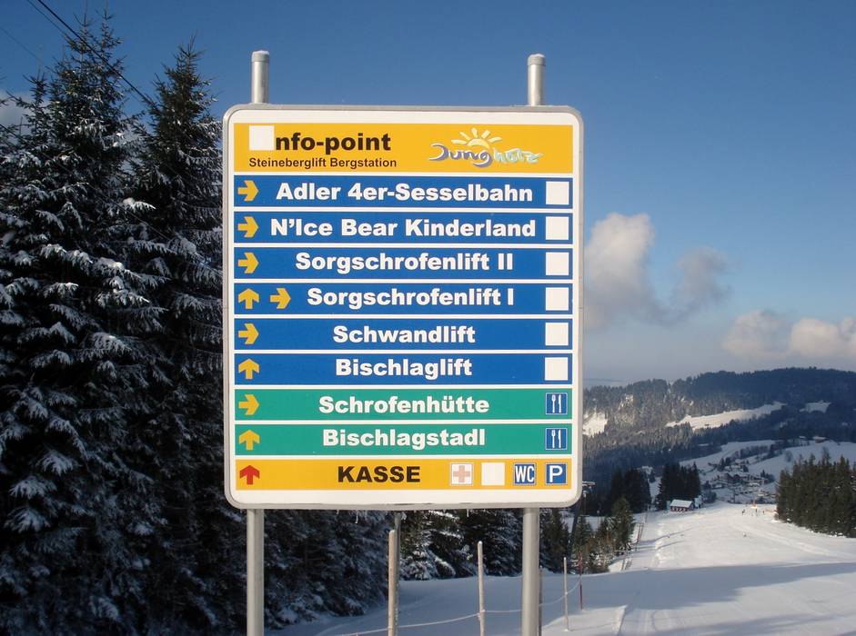Orientierung (Pistenplan, Informationstafeln, Ausschilderung) und Sicherheit im Skigebiet Jungholz