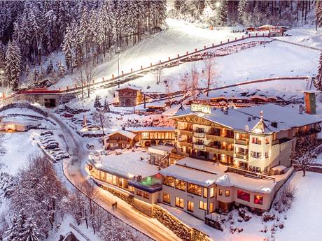 Das Alpin Family Resort Seetal liegt etwas oberhalb von Kaltenbach und bietet einen herrlichen Blick über das Zillertal. Die Skipiste führt nur wenige Meter am Hotel vorbei. Somit kann man direkt am Hotel auf die Piste und zur Talstation der Hochzillertalbahnen abfahren. Am Ende eines Skitages kann man wieder direkt bis zum Hotel wedeln. Etwas oberhalb des Hotels gibt es die Seetal-Schirmbar, wo man zum Après-Ski einkehren kann.