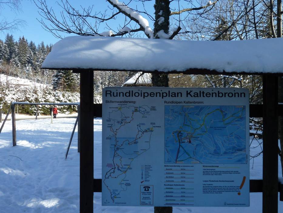 Direkt in Kaltenbronn starten mehrere Rundloipen mit bis zu 21,5km Länge. Die meisten sind für den klassischen Stil präpariert. Das Kaltenbronner Loipennetz ist außerdem mit vielen Loipen der umliegenden Orte verbunden.