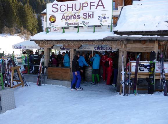 Täglich ab 15 Uhr ist im Schupfa Après-Ski angesagt. Das Erlebnisgasthaus ist direkt an das Hotel Auhof angebaut. Das Ambiente ist zünftig.