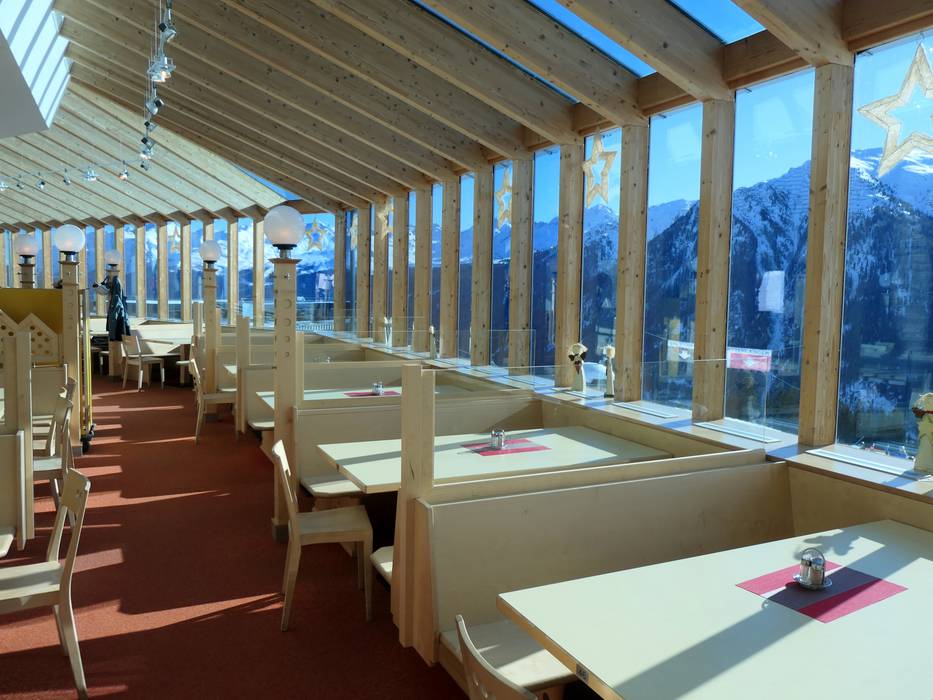 Das große Selbstbedienungsrestaurant bietet Tiroler Küche und eine große Panoramaterrasse.