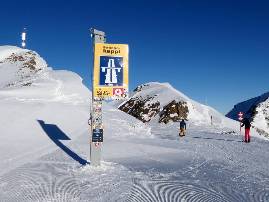 Orientierung (Pistenplan, Informationstafeln, Ausschilderung) und Sicherheit im Skigebiet Kappl