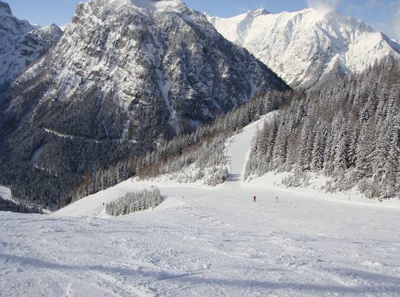 Das Skigebiet der Karwendel Bergbahn in Pertisau bietet leichte und mittelschwere Pisten im Mix. Es gibt keine schweren Abfahrten.