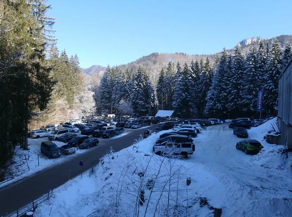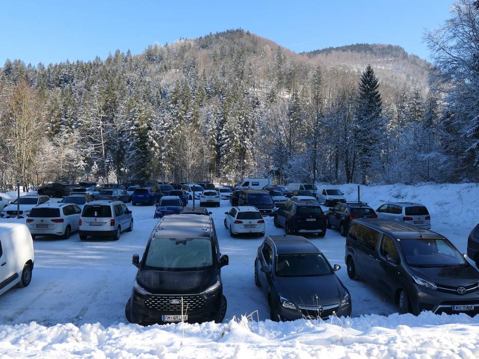 Parkplätze: meist ausreichend vorhanden, asphaltierter Platz, Kiesplatz, kostenfrei