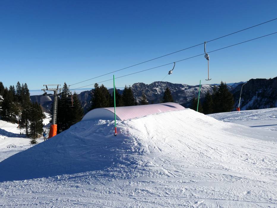 Der Snowpark sorgt bei Kids, Jugendlichen und Freestylern für Action. Die Elemente sind eher einfacher gehalten und damit perfekt für die ganze Familie.
