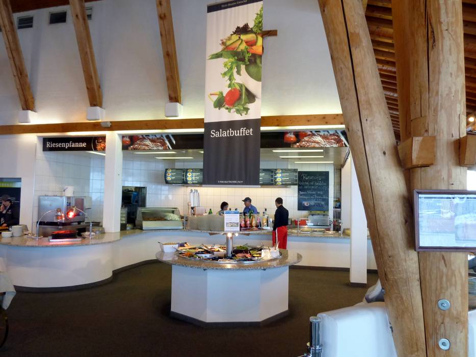 Das SB-Restaurant bietet Tiroler Spezialitäten, internationale Küche und vegetarische Gerichte. Der Holzbau ermöglicht mit seinen großen Glasflächen den Blick auf den Gletscher. Die große Sonnenterrasse lockt an schönen Tagen.