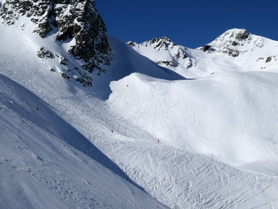 Am Kaunertaler Gletscher befindet sich mit der Black Ibex die wohl steilste Piste Österreichs mit 87,85 % Gefälle. Die Steilheit des Hanges am Falginjoch ist tatsächlich beachtlich! Weitere attraktive schwarze Pisten starten am Karlesjoch und am Weißseejoch.