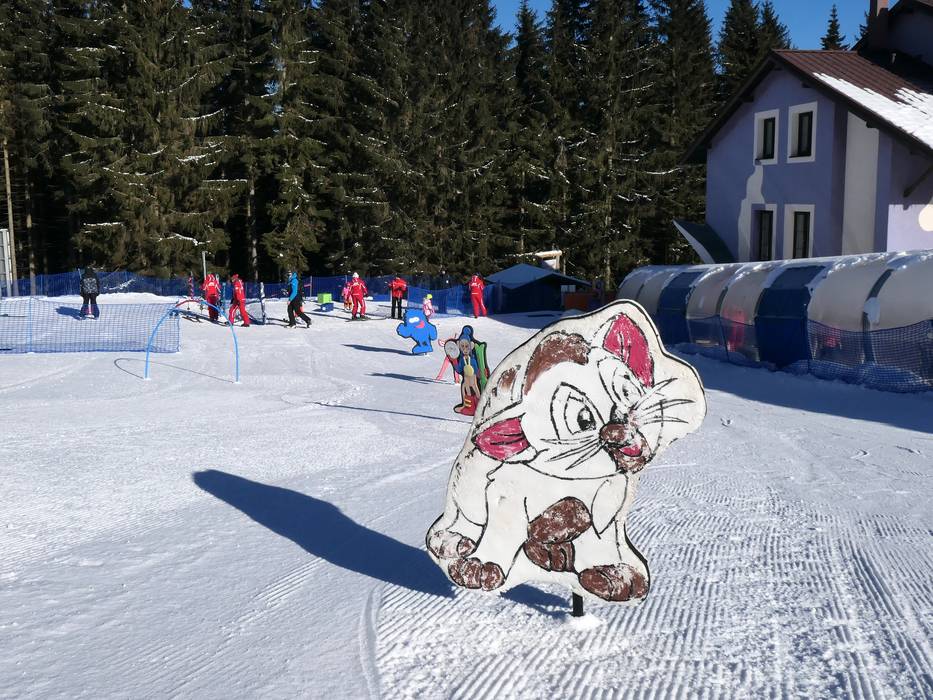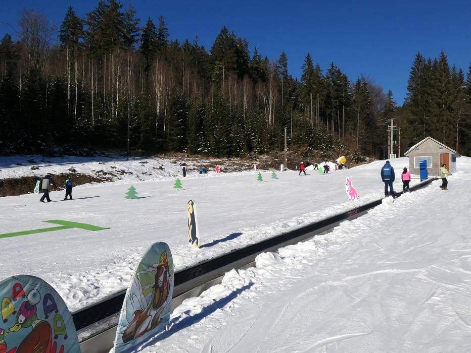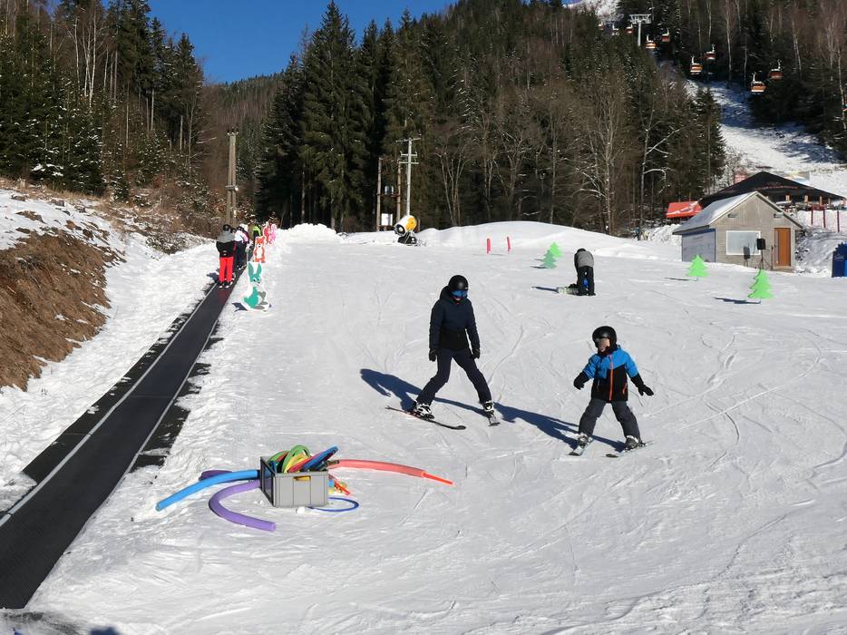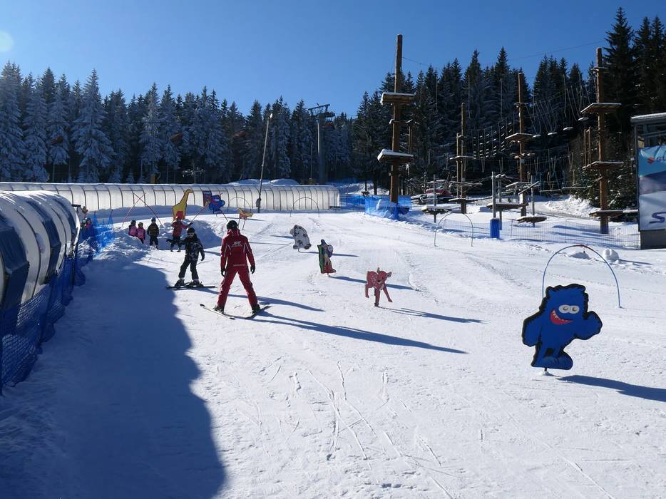 Das Kinderland liegt an der Talstation der Sesselbahn Dámska. Die Skischule unterrichtet an Zauberteppichen. Lustige Figuren begeistern Kinder.