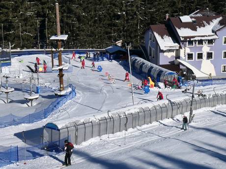 Familien fühlen sich in Klínovec besonders wohl. Kinderländer und Skischulen bieten ideale Voraussetzungen für einen gelungenen Einstieg in den Skisport. Viele der Pisten an den modernen Sesselbahnen sind leicht und gut geeignet für Anfänger. Das Skigebiet ist überschaubar und dadurch sehr familienfreundlich. Cross-Strecken sowie leichte Elemente im Snowpark sorgen zusätzlich für Abwechslung und Spaß für die ganze Familie.