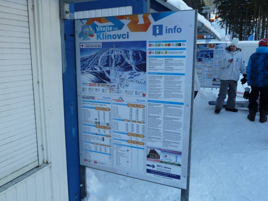 Orientierung (Pistenplan, Informationstafeln, Ausschilderung) und Sicherheit im Skigebiet Keilberg (Klínovec)