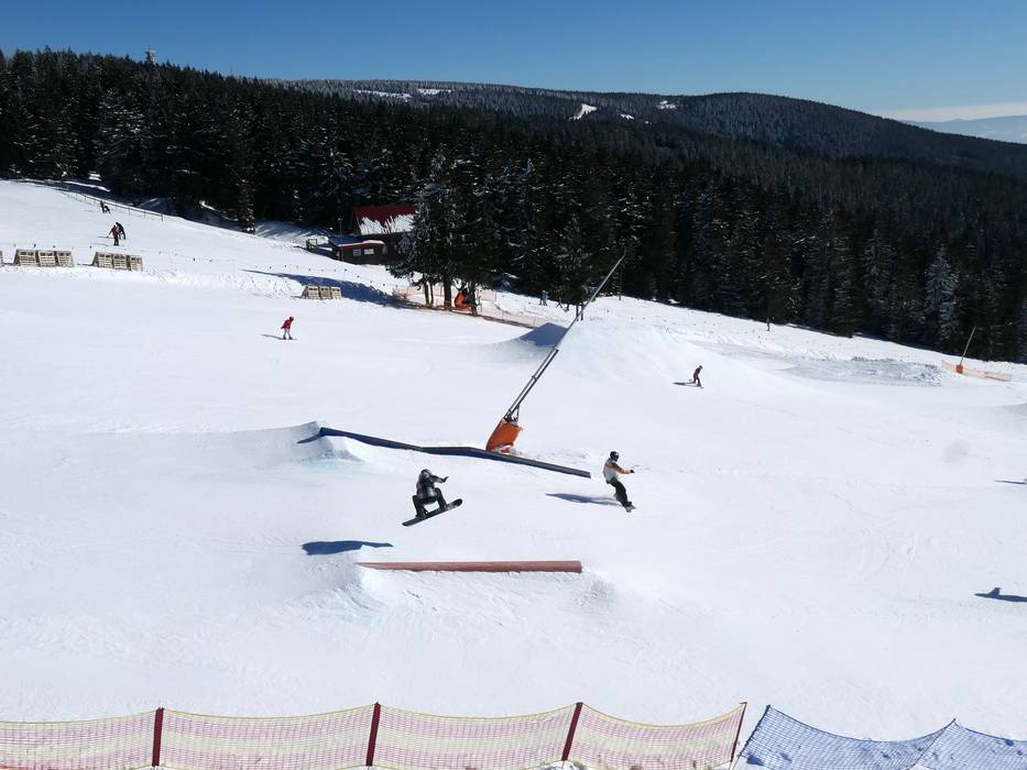 Der Snowpark in Neklid ist einer der ältesten in der Region und er bietet viele Hindernisse und Kicker.