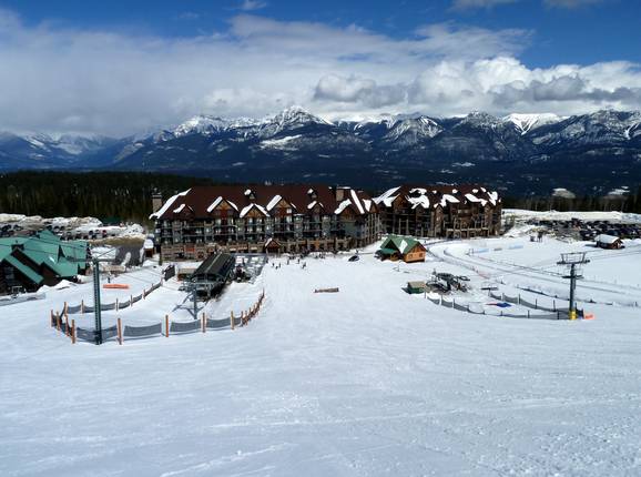 Direkt an der Talstation der Gondelbahn befindet sich das Kicking Horse Mountain Resort mit Unterkünften, Restaurants und Shops. Hier befindet sich - nur 10 Meter von der Gondelbahn entfernt - unter anderem die Glacier Mountaineer Lodge, eine luxuriöse Unterkunft mit offenen Kaminen und Kochzeilen in den Zimmern. Etwas oberhalb, direkt an den Pisten, liegen die Palliser Lodge, Whispering Pines und The Aspens. Weitere Unterkünfte findet man nur wenige Schritte von der Talstation der Gondelbahn entfernt. In den letzten Jahren wurden hier viele hochwertige Unterkünfte errichtet.