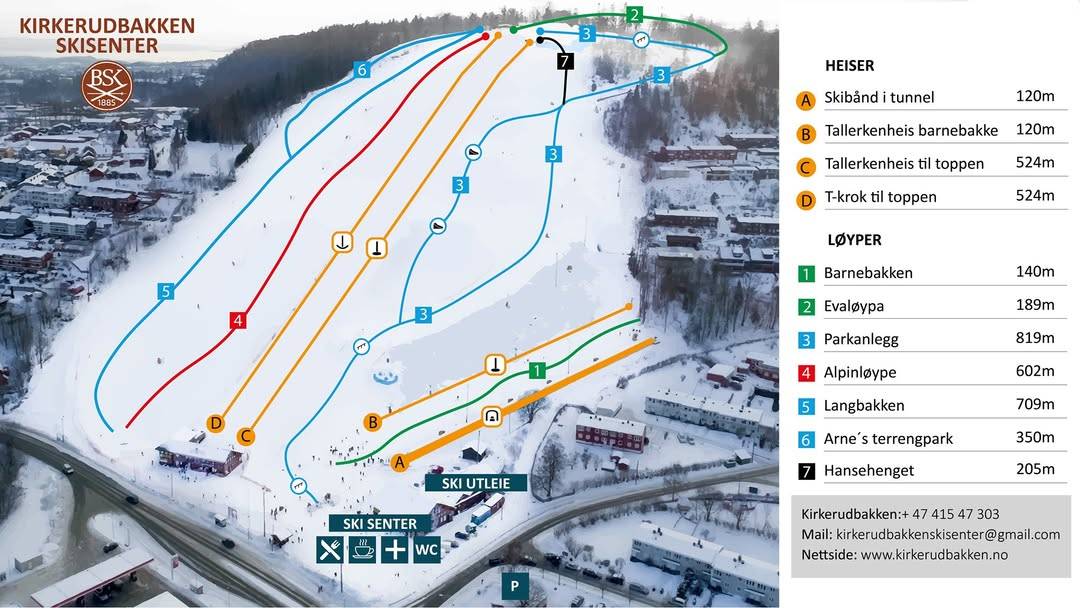 Pistenplan Kirkerud Saison 2025/2026