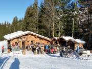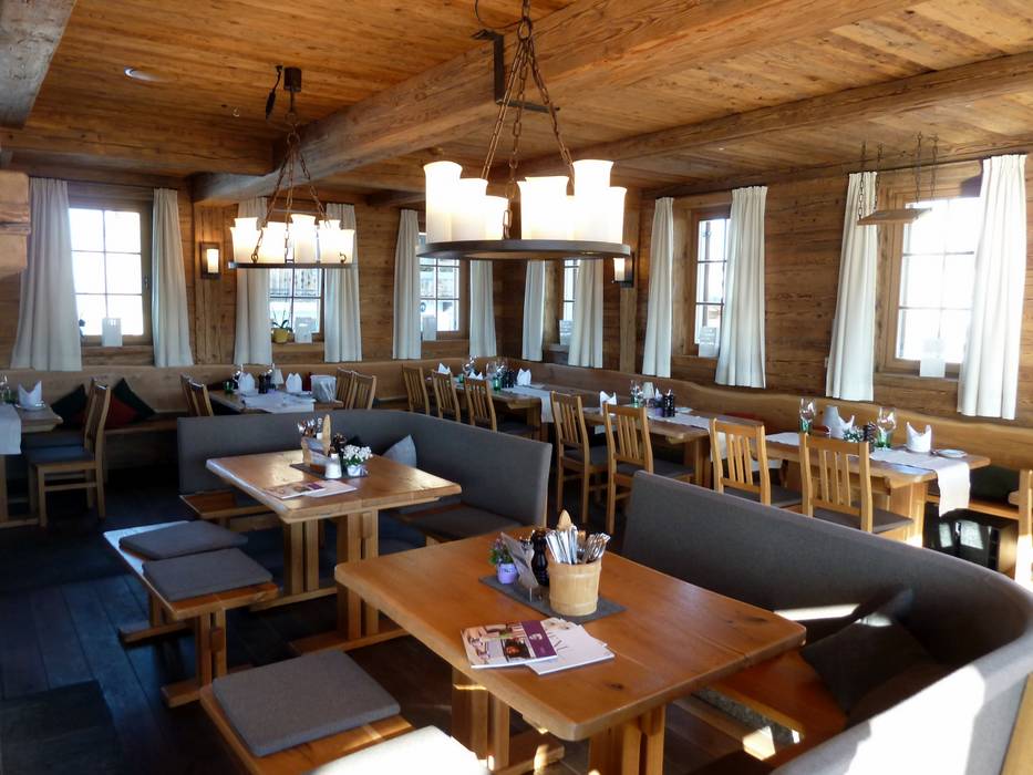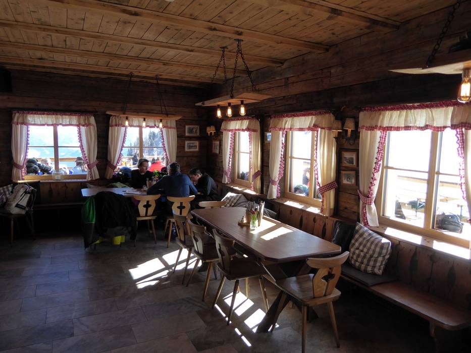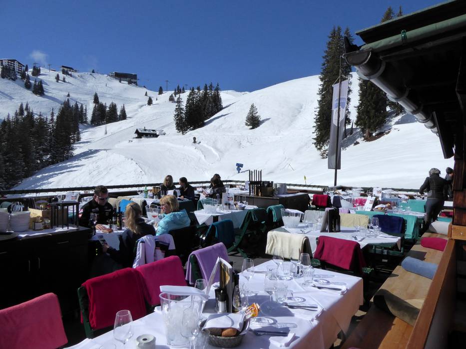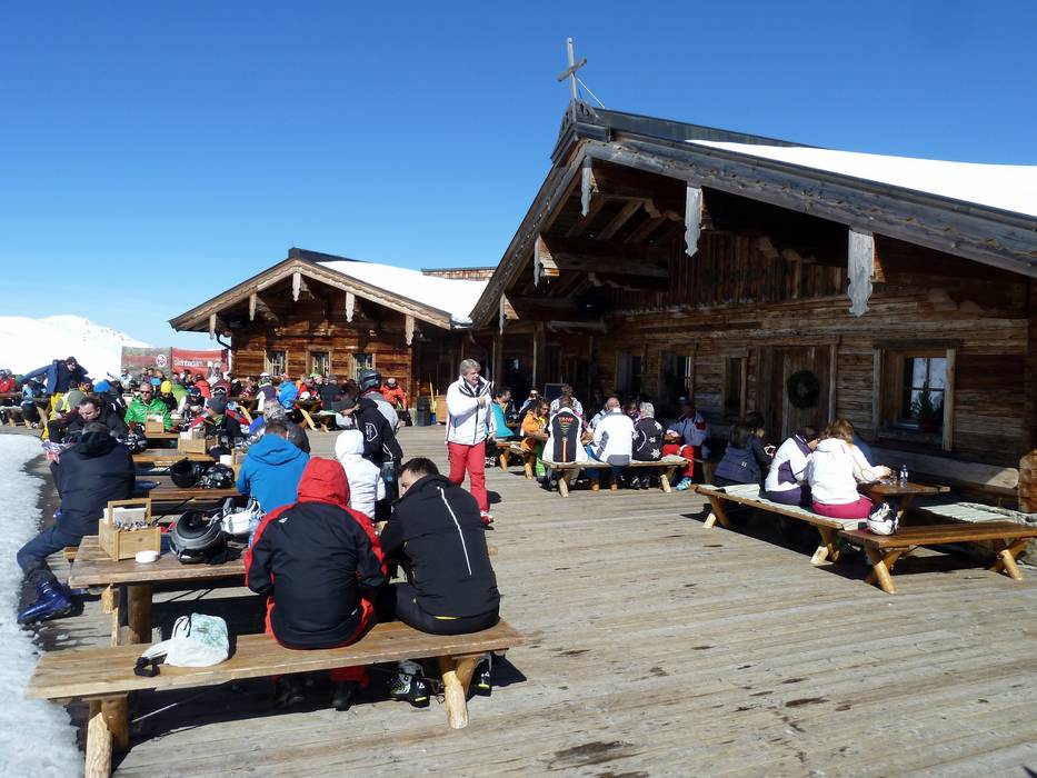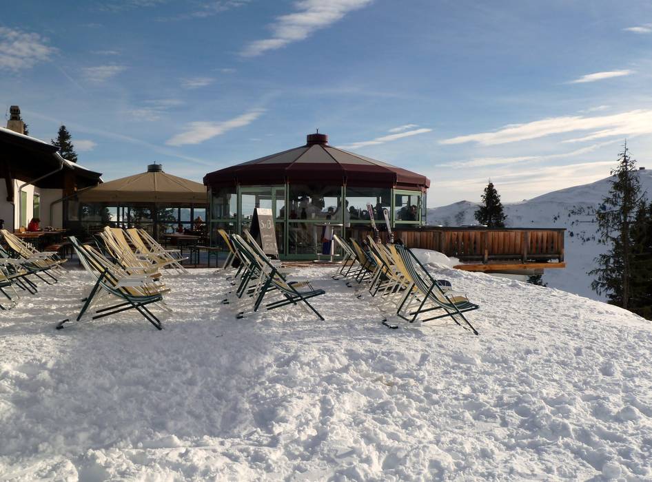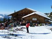 Die Aussicht von der Sonnenterrasse ist etwas ganz besonderes - so ein Panorama findet man so schnell nicht wieder. Die urige Berghütte mit den netten Stuben und gutem Essen lockt die Gäste aus dem ganzen Skigebiet an. Die Bar auf der Sonnenterrasse ist ein beliebter Treffpunkt.