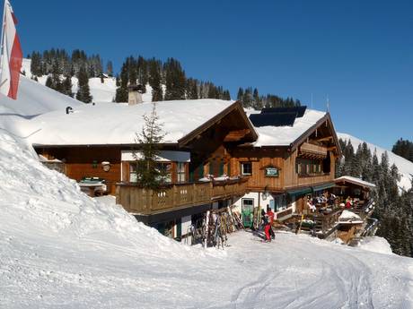 Im ganzen Skigebiet verteilt warten gemütliche Hütten auf die Skifahrer. Man findet vom Selbstbedienungsrestaurant bis zum Gourmetrestaurant alles. Zahlreiche Sonnenterrassen und gemütliche Skihütten laden zum Verweilen ein. In einigen exklusiven Hütten trifft man auch mal einen Promi, wie z.B. im Berggasthof Sonnbühel oder in der Toni Alm.