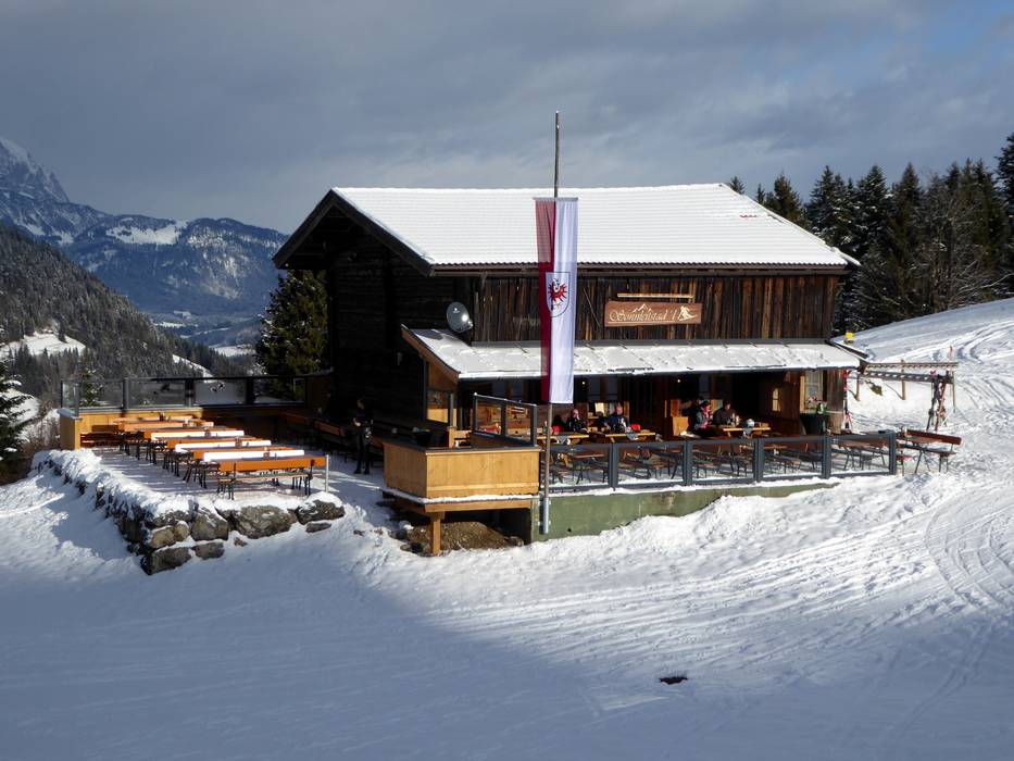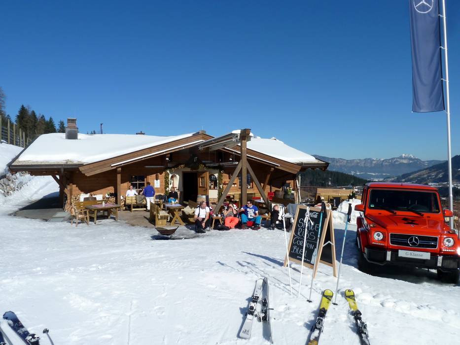Gemütliche Skihütte mit Tiroler Ambiente und herrlichem Blick auf den Zweitausender. Große Sonnenterrasse und gepflegte Speisen und Getränke. Es wird viel auf Qualität gelegt, so kommt z.B. das Rindfleisch aus der eigenen Anguszucht "Jochberger Angus".