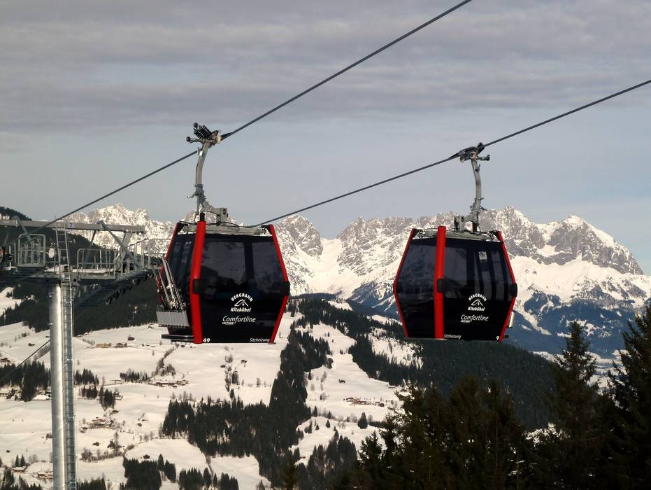 Umlaufbahn/Gondelbahn im Skigebiet KitzSki – Kitzbühel/​Kirchberg