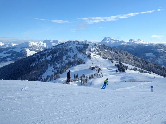 Blick auf das Kitzbüheler Horn mit Hahenkamm Die neue Fleckalmbahn von Kirchberg ins Skigebiet… Blick zur Hanglalm mit den Hohen Tauern Abfahrt zur Resterhöhe mit Blick ins Pinzgau Die Streif mit Seidelalmsprung Hahnenkammrennen Kitzbühel Blick auf den Wilden Kaiser vom…