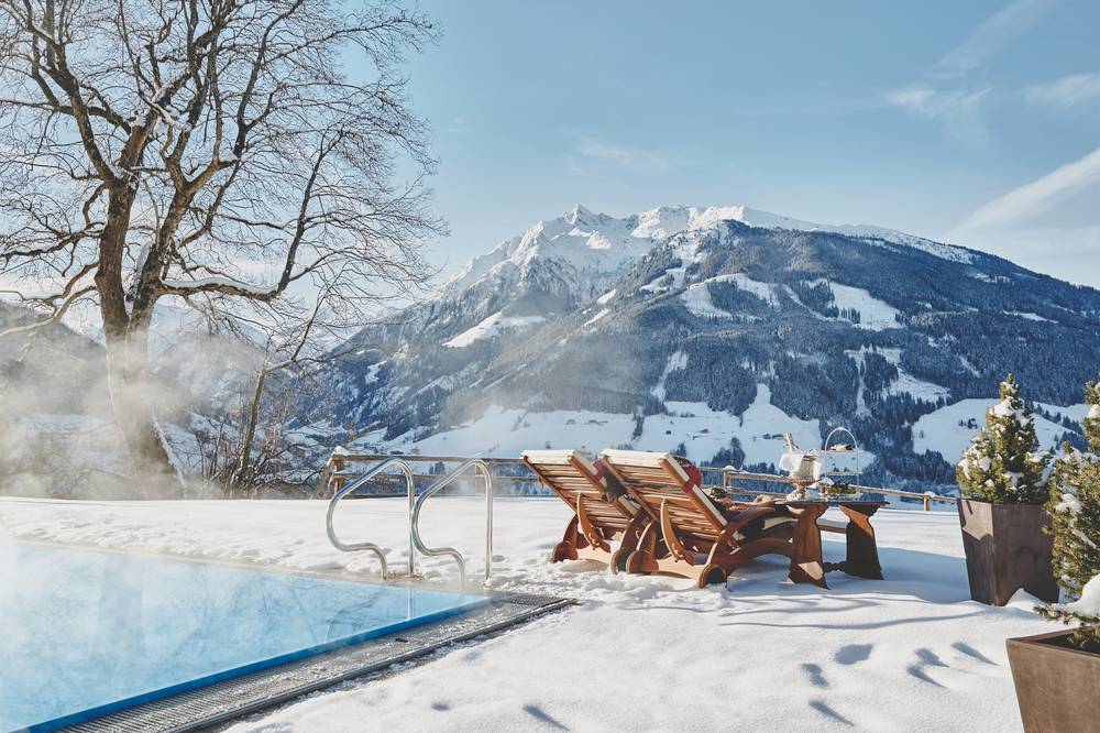 Der Wellness & Spa Bereich bietet einen ganzjährig beheizten Außenpool mit herrlichem Blick auf die Hohen Tauern. Verschiedene Saunen, darunter auch eine Finnische Außensauna, Dampfbad und Panorama-Ruheräume laden zum Relaxen und Entspannen ein. Massagen und Treatments mit Produkten von SOTHYS Paris runden das Angebot ab.
