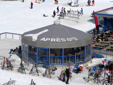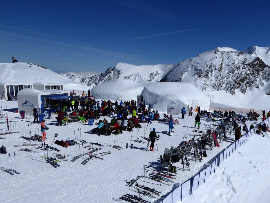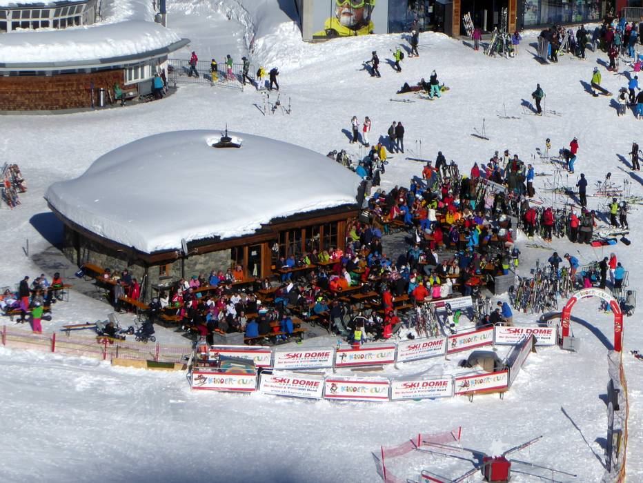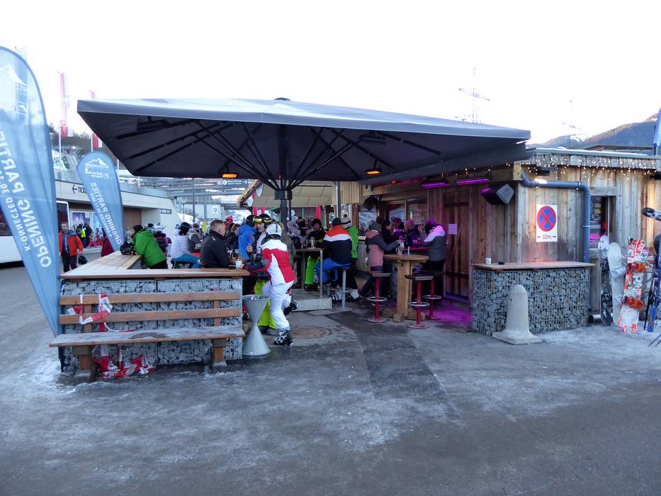 Gute Stimmung bei toller Musik bis zur letzten Talfahrt. Die Parasol-Schirmbar ist der Mittelpunkt der großen, nach Süden gerichteten Terrasse vor dem Alpincenter.