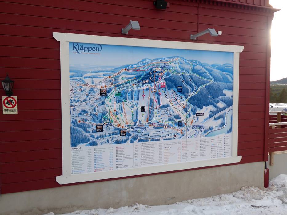 Im Skigebiet Kläppen sind die Pisten alle sehr gut ausgeschildert. An einigen Punkten findet man zusätzlich Pistenpläne. Aktuelle Betriebsinformationen zu den geöffneten Liften und Pisten findet man jedoch nur online in der App oder auf der Webseite des Skigebiets.