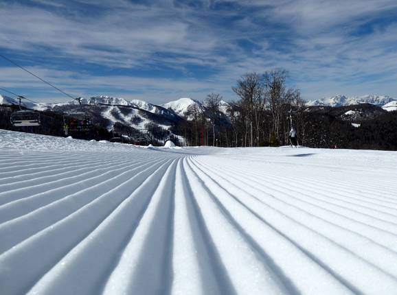 Die Pisten im Skigebiet Kolašin werden täglich mit viel Sorgfalt und Liebe zum Detail mit modernen Pistengeräten präpariert.