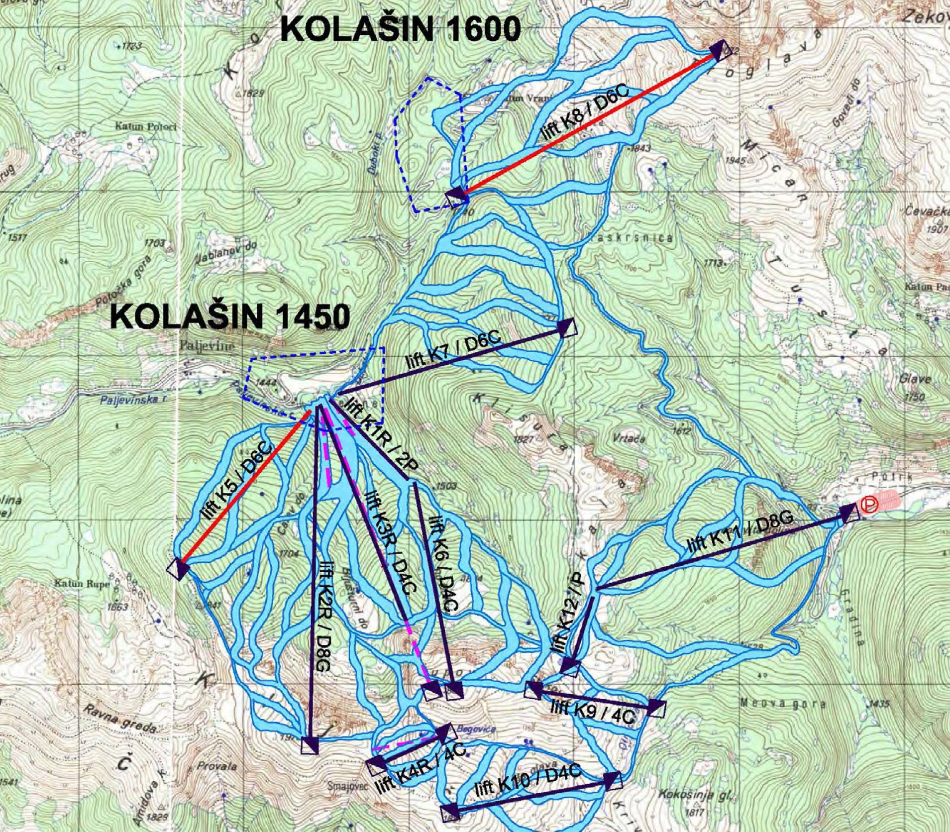 Pistenplan Kolašin 1450/​Kolašin 1600
