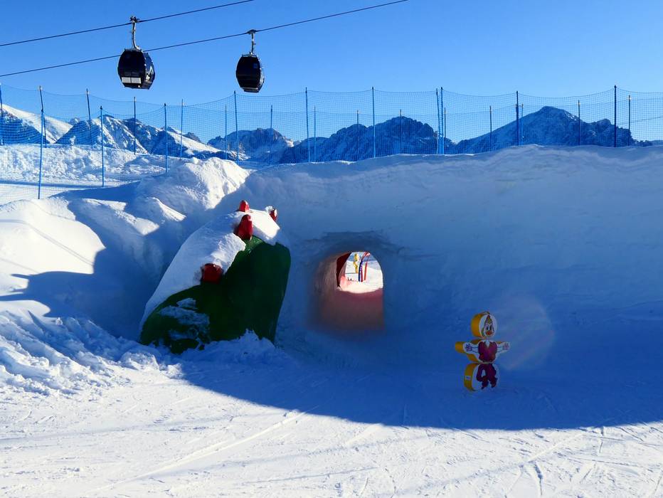 Bei der Gondelbahn Miara finden Kinder eine schöne Piste mit lustigen Elementen.