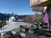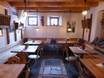 Die Hütte liegt fast immer in der Sonne und bietet eine nette Bar und Sonnenterrasse. An kalten Wintertagen wärmt der Kachelofen in der Stube.