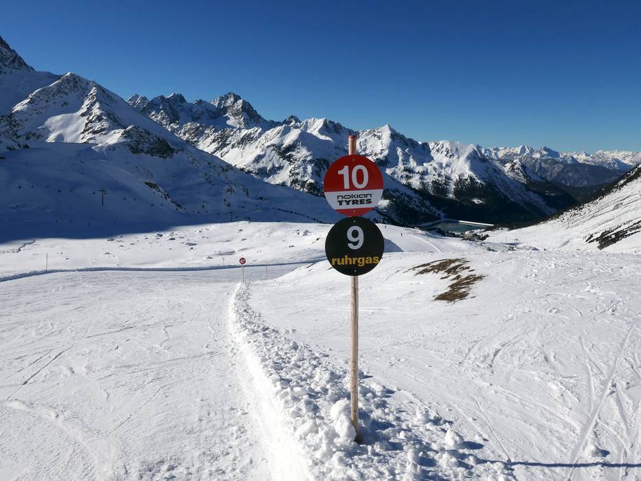 Orientierung (Pistenplan, Informationstafeln, Ausschilderung) und Sicherheit im Skigebiet Kühtai