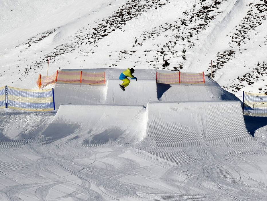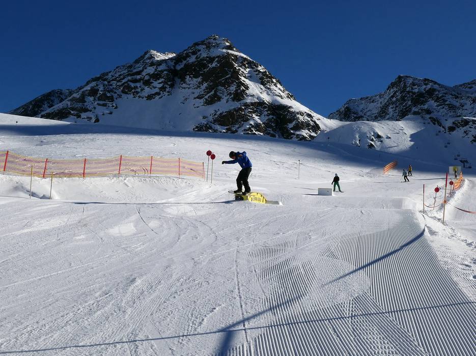 Auch Anfänger und Kinder kommen im Snowpark Kühtai auf ihre Kosten. Im KidsPark warten neben verschiedenen Obstacles auch kleine Sprünge. Hier können Neulinge das erste Mal jibben und sliden.