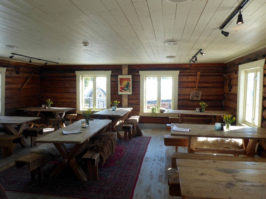 Die traditionelle Berghütte mit gemütlicher Atmosphäre ist für die typische Norwegische Küche bekannt. Die rustikale Einrichtung und das knisternde Kaminfeuer laden ein, sich aufzuwärmen und zu entspannen. Bei schönem Wetter kann man auch draußen sitzen.
