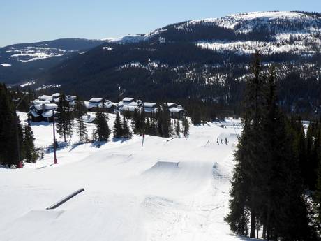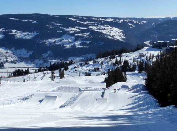 Der Snowpark an der Mittelstation ist ein Anziehungspunkt für die Freestyler. Neben dem Snowpark gibt es noch einen kleinen Juniorpark (KIDS Parken) am Barne/Skiskoleheisen.