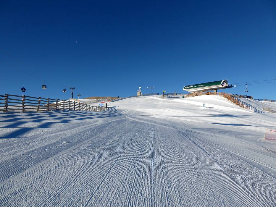 Pisten auf rund 2500 m am La Tosa Mit der Gondelbahn geht es zum La Tosa auf 2537…