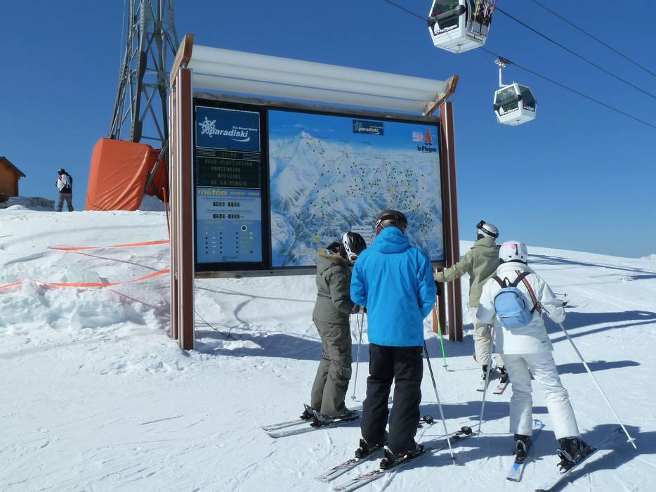 Orientierung (Pistenplan, Informationstafeln, Ausschilderung) und Sicherheit im Skigebiet La Plagne (Paradiski)