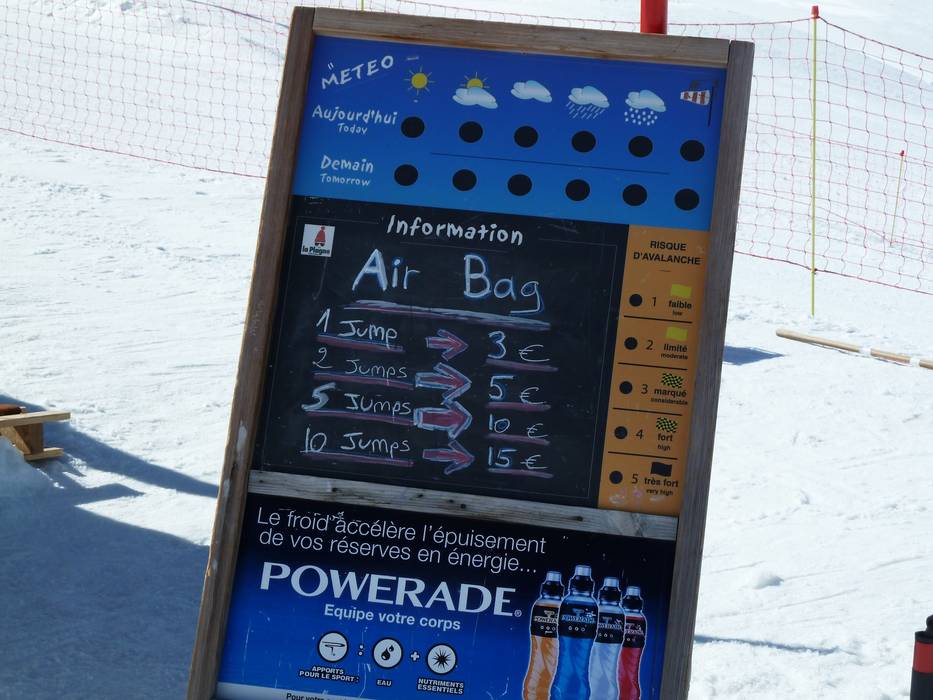 Großer Snowpark leicht oberhalb von Belle Plagne. Es gibt einen Einsteiger-Park zu Beginn und anschließend einen Experten-Park für die Fortgeschrittenen und Profis. Wer Jumps üben will kann dies sicher auf dem Big Air Bag (großes Luftkissen) kostenpflichtig machen. Es können Figuren ausgeführt werden, ohne Gefahr zu laufen, schwer zu stürzen.