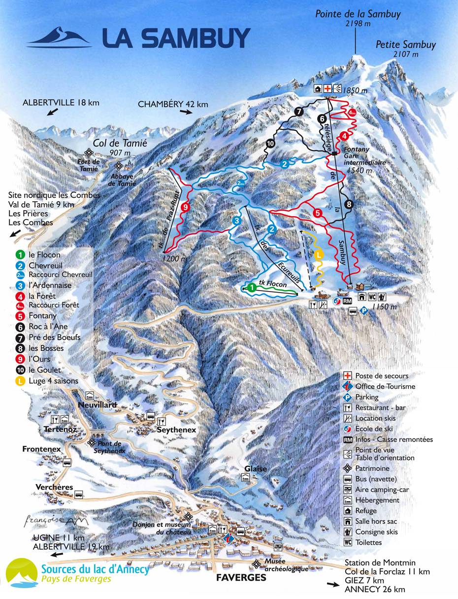 Pistenplan La Sambuy – Seythenex Saison ---- !!! closed temporarily/vorübergehend außer Betrieb