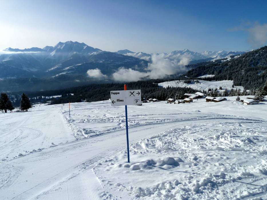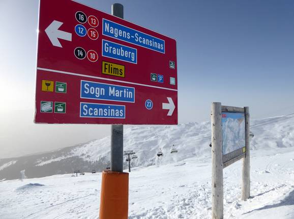 Orientierung (Pistenplan, Informationstafeln, Ausschilderung) und Sicherheit im Skigebiet Laax/Flims/Falera