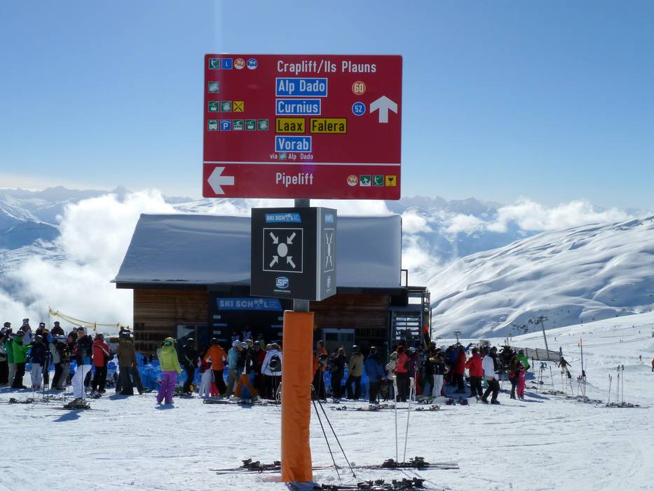Im gesamten Skigebiet von Laax sind die Pisten sehr gut ausgeschildert. An den meisten Punkten findet man auch Pistenpläne. Digitale Anzeigen und aktuelle Informationen runden die Informationen ab. An jeder Liftanlage sind Betriebszeiten und weitere Informationen vorbildlich angebracht.
