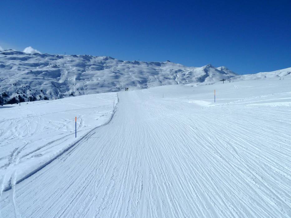 In alle drei Orte (Flims, Laax, Falera) führen beschneite Talabfahrten.