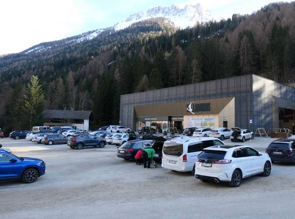 Parkplätze: ausreichend vorhanden, asphaltierter Platz, Kiesplatz, kostenfrei