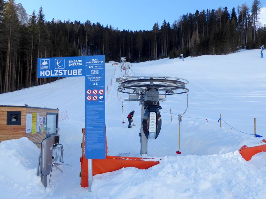 An der neuen Mittelstation der 10er-Kabinenbahn Ladurns wurde der neue Tellerlift Holzstube errichtet. Der Skilift erschließt eine schöne Anfängerpiste.