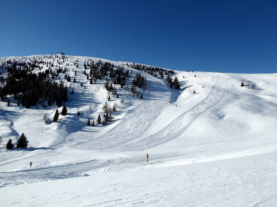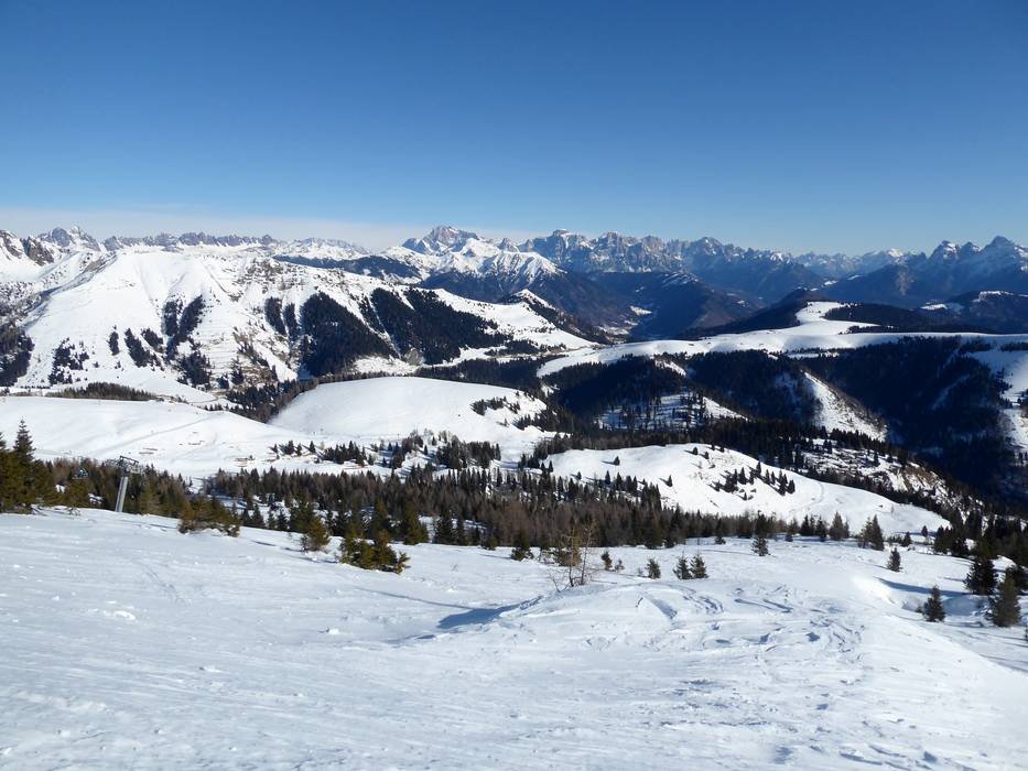Blick von der Talstation entlang der Piste… Dolomitenpanorama vom Monte Agaro Aussichtspunkt am Monte Agaro mit Blick ins… Blick auf die Pisten am Monte Agaro