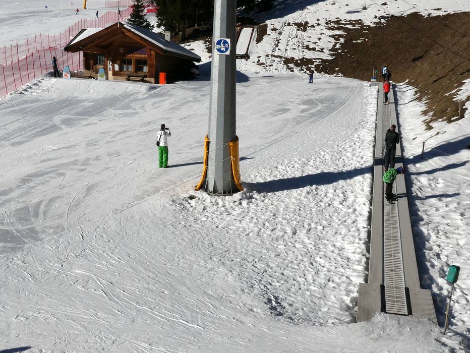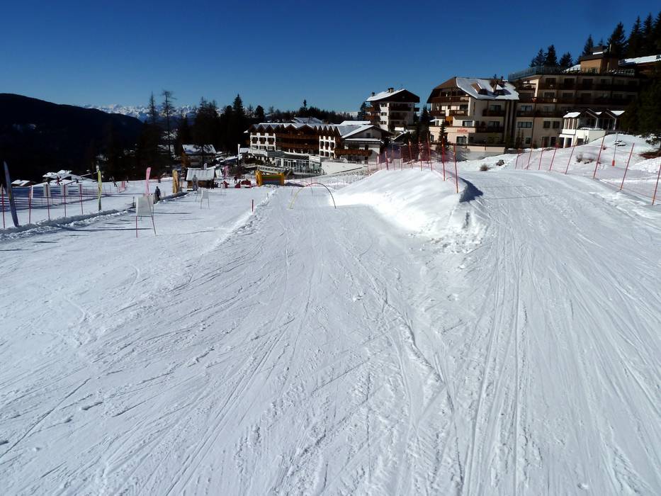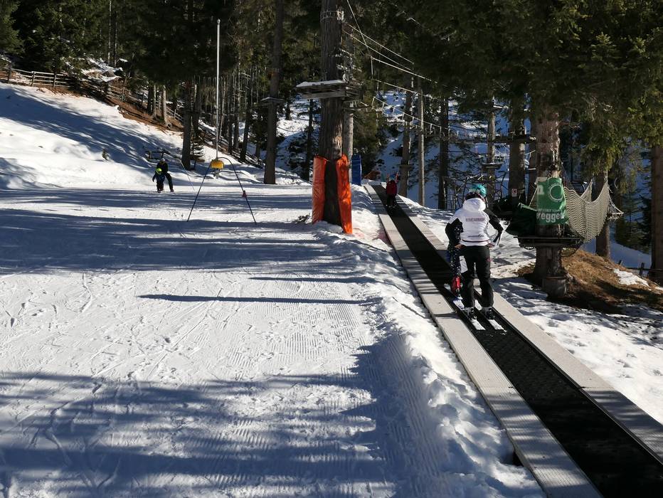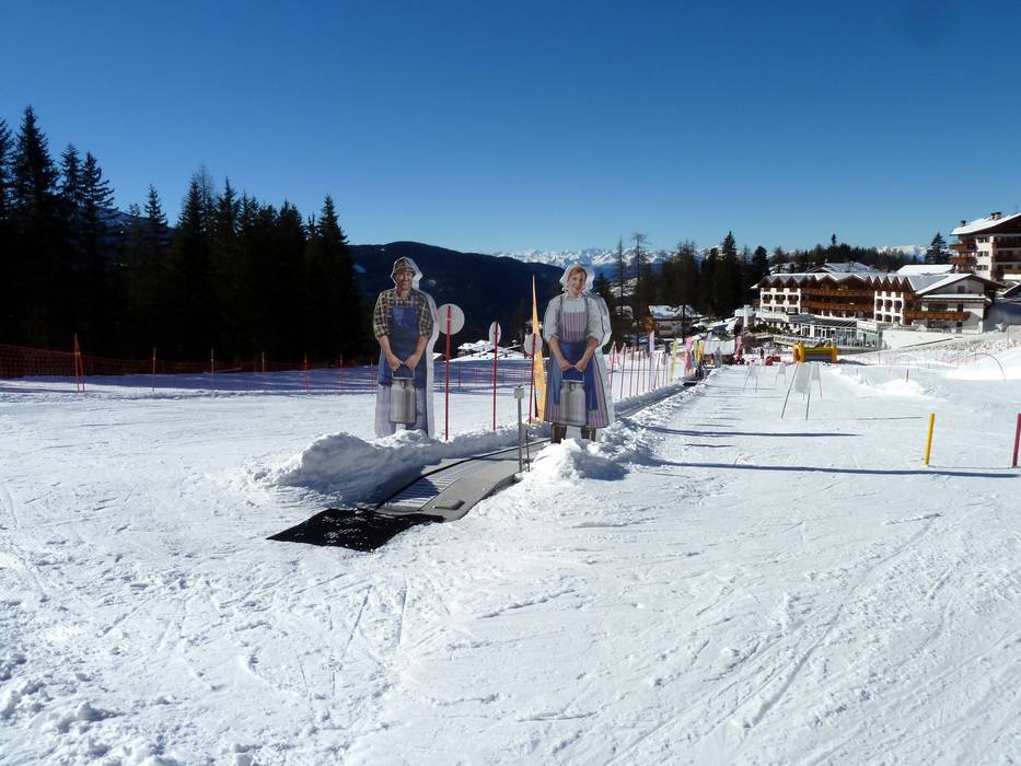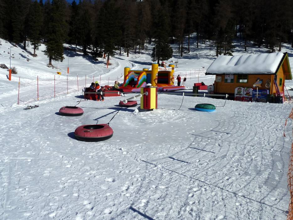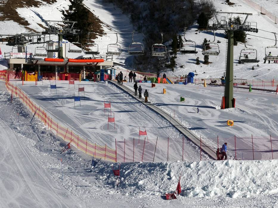An der Bergstation der Gondelbahn von Predazzo gibt es einen betreuten Kindergarten mit Förderband und Kinderpiste.